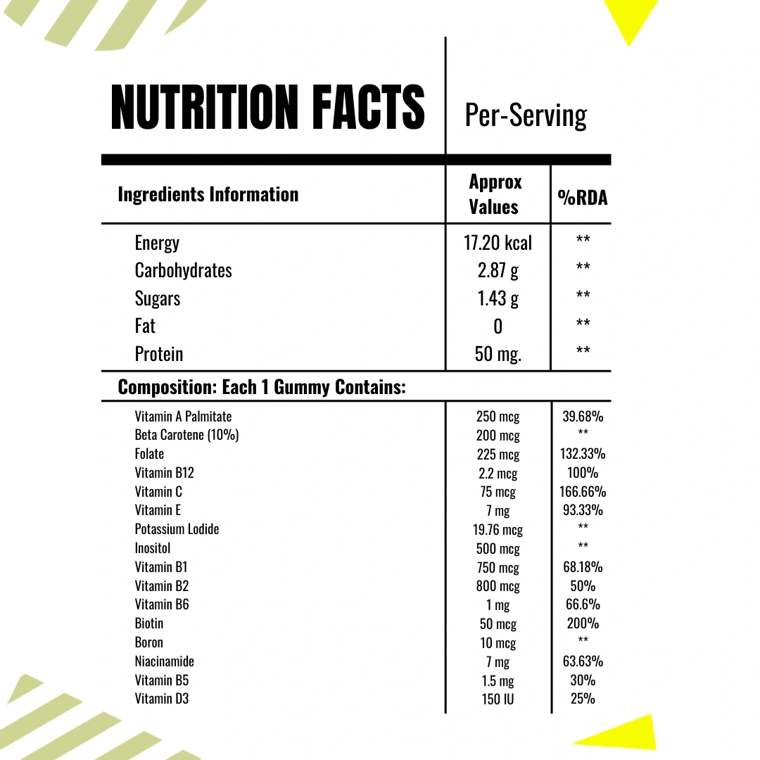 Simply take one gummy daily. For the best results and to ensure consistent nutrient levels, make it a part of their morning or afternoon routine.